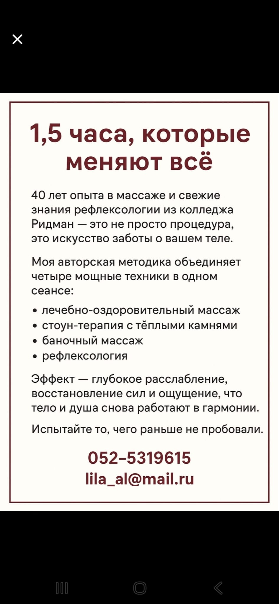 Дипломированный массажист международного уровня.40 лет практики.