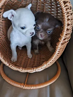 Щенки Чихуахуа, маленькие красивые и очень ласковые. Возраст два месяца, получили две прививки. Переходят в новый дом с приданным .Советы и вопросы ко мне независимо от возраста щенка. Приучены к пелёнке и едят сухой корм.